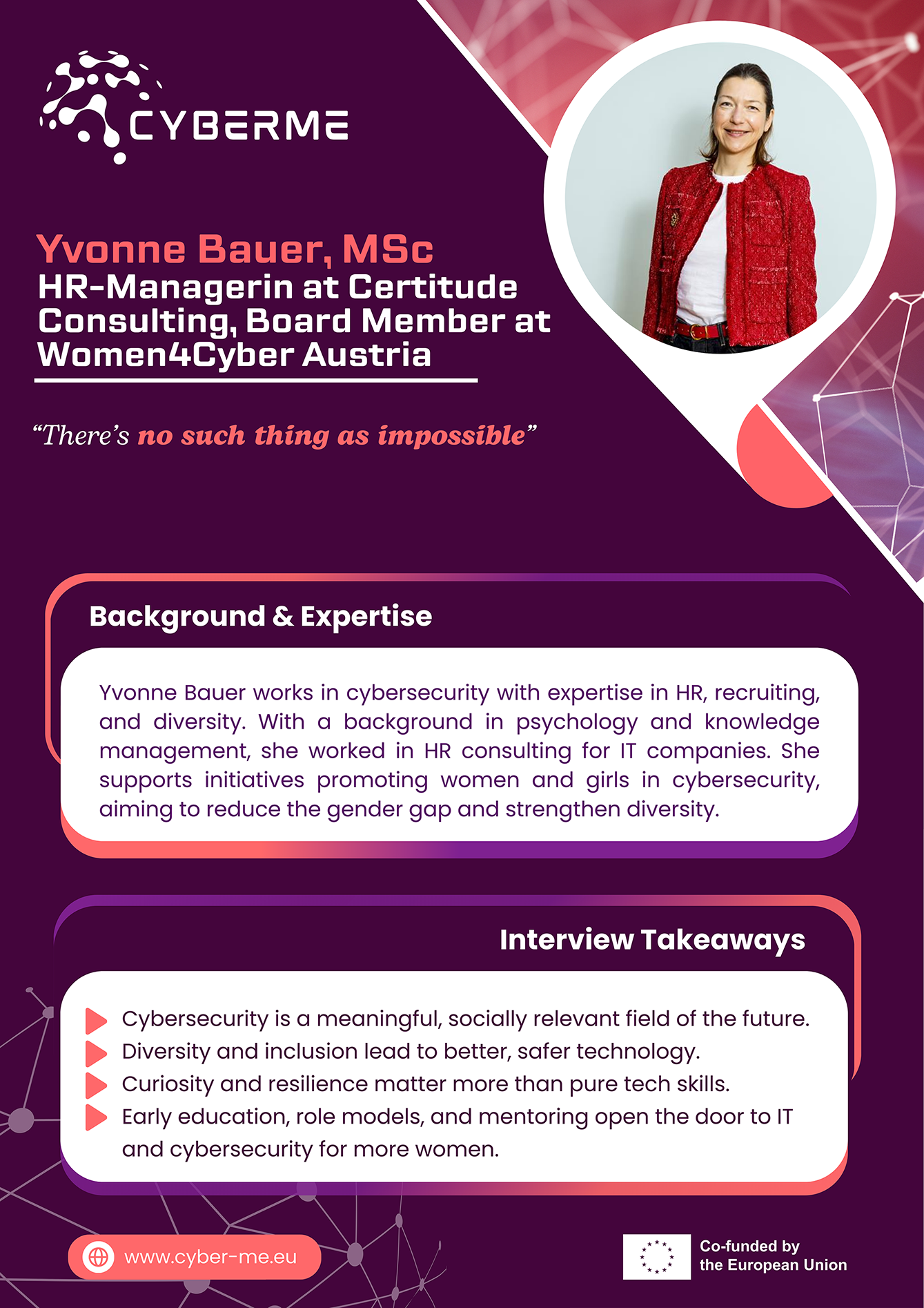 - Field of expertise: Human Resources, Recruiting, Diversity, and Gender Inclusion in IT and Cybersecurity